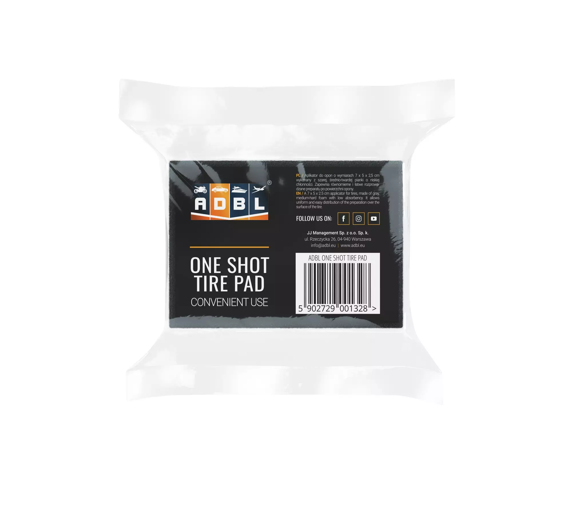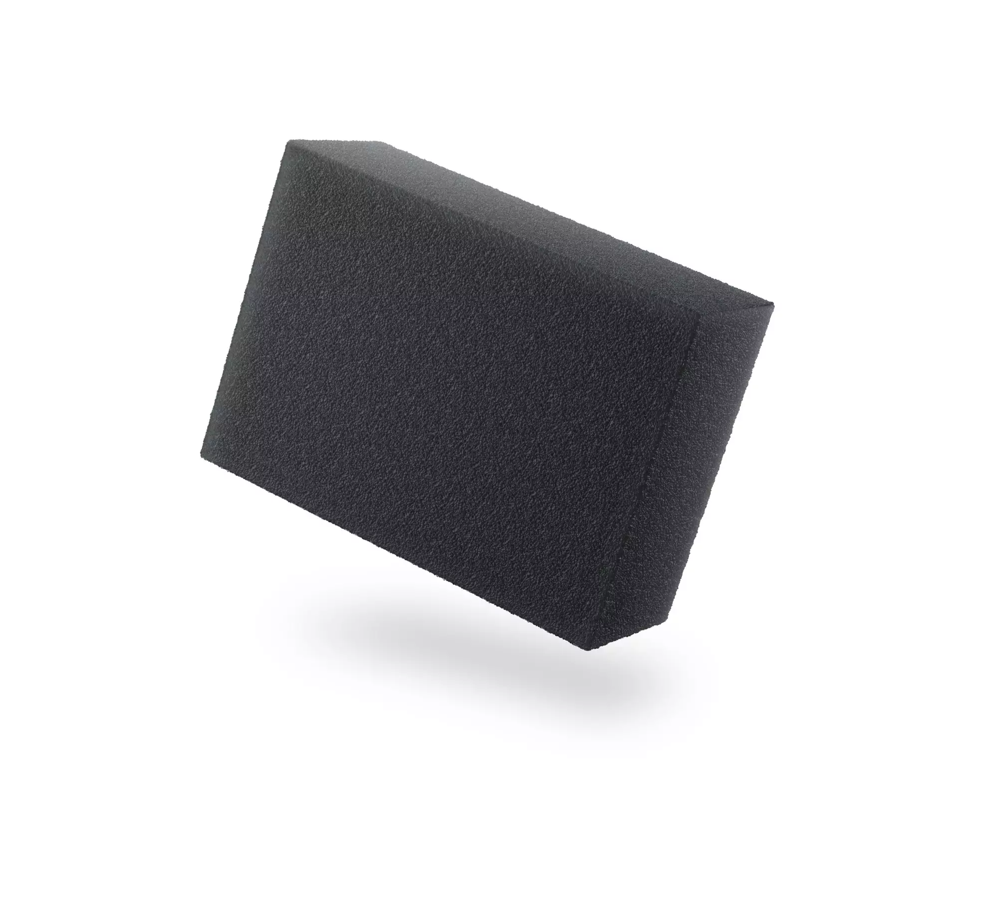En 7 x 5 x 2,5 cm applikator til dækshine, lavet af gråt, medium-hårdt skum med lav absorberingsevne. Den muliggør ensartet og nem fordeling af præparatet over dækkets overflade.