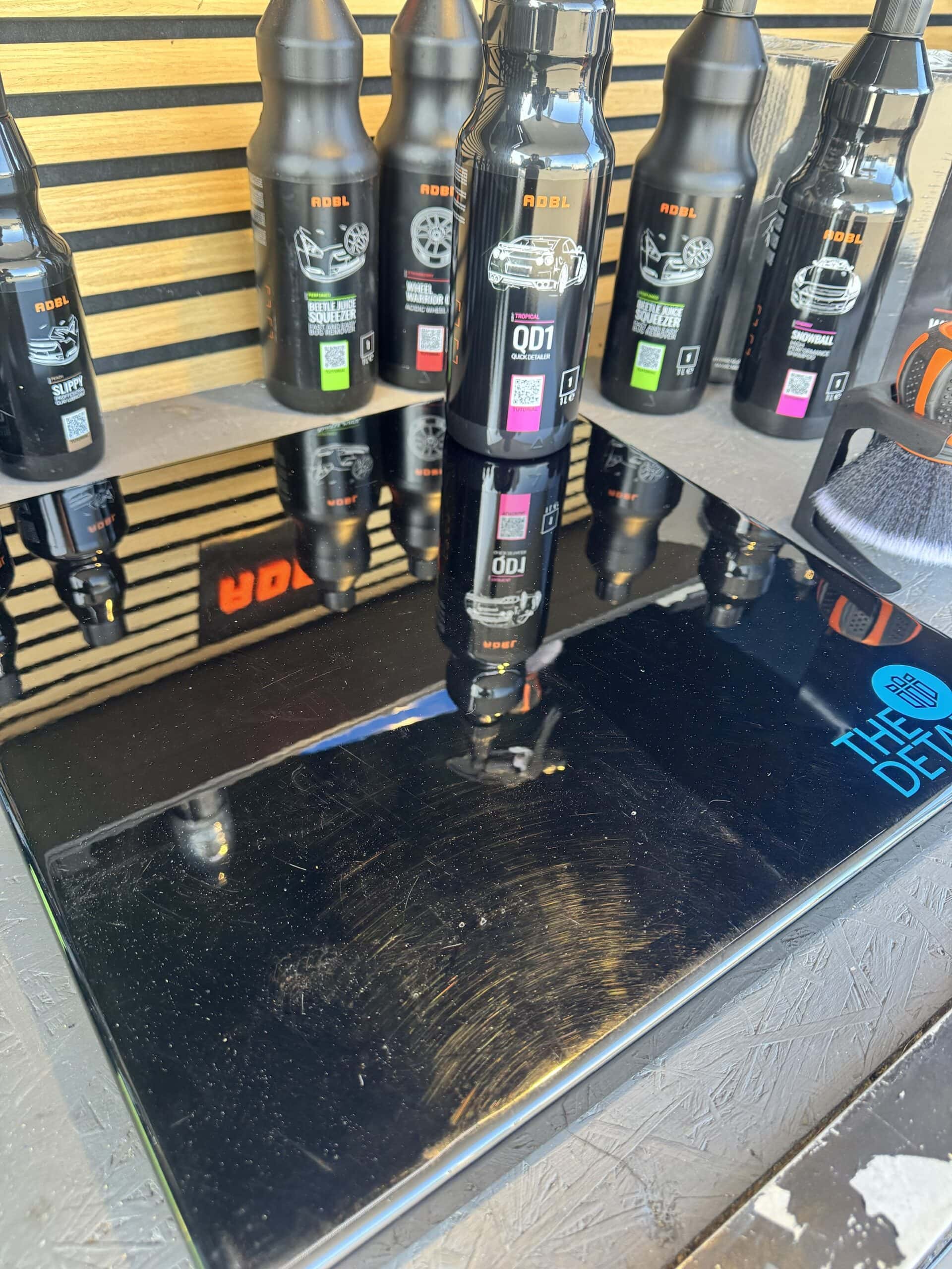 - Spray ADBL QD1 jævnt over en tør biloverflade.