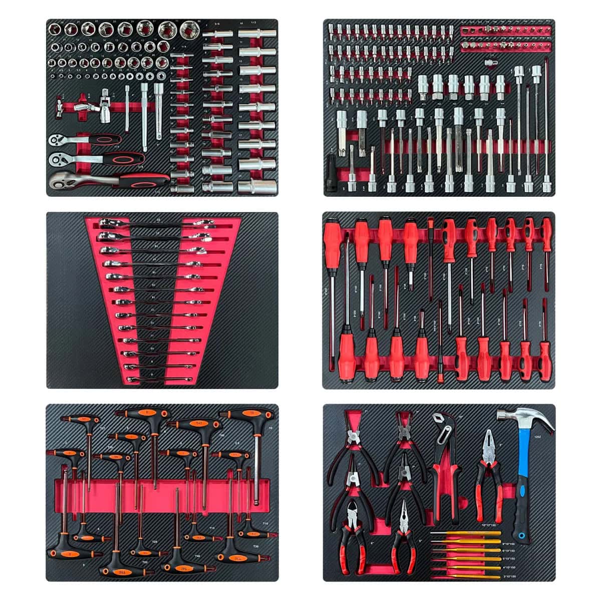 Alle dele er professionelt sorteret i foam-inlays, så værktøjet altid ligger på plads og er hurtigt at finde.