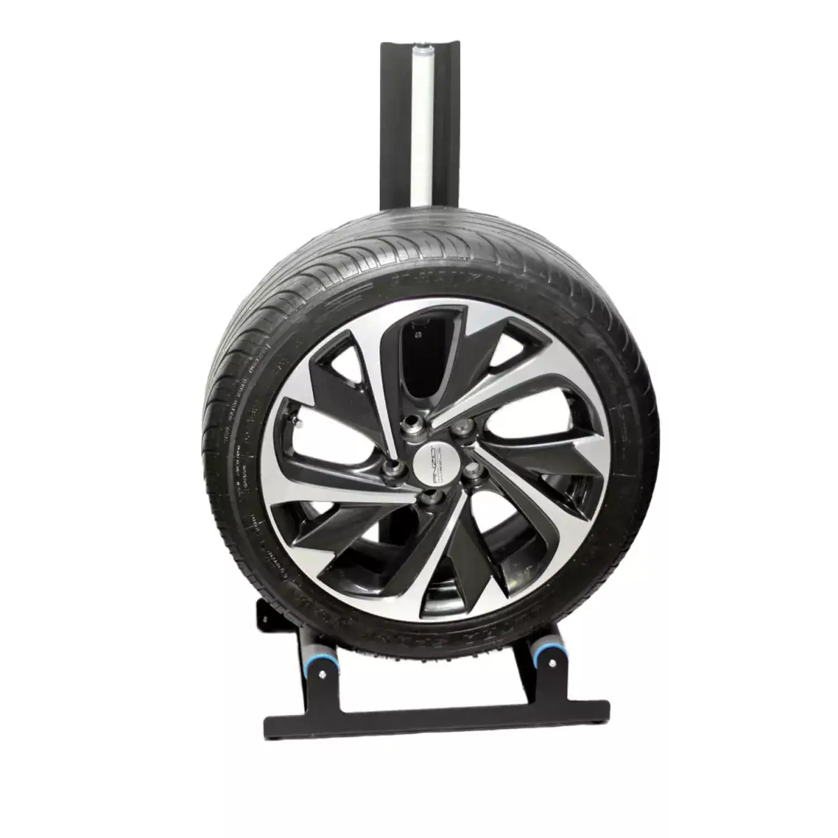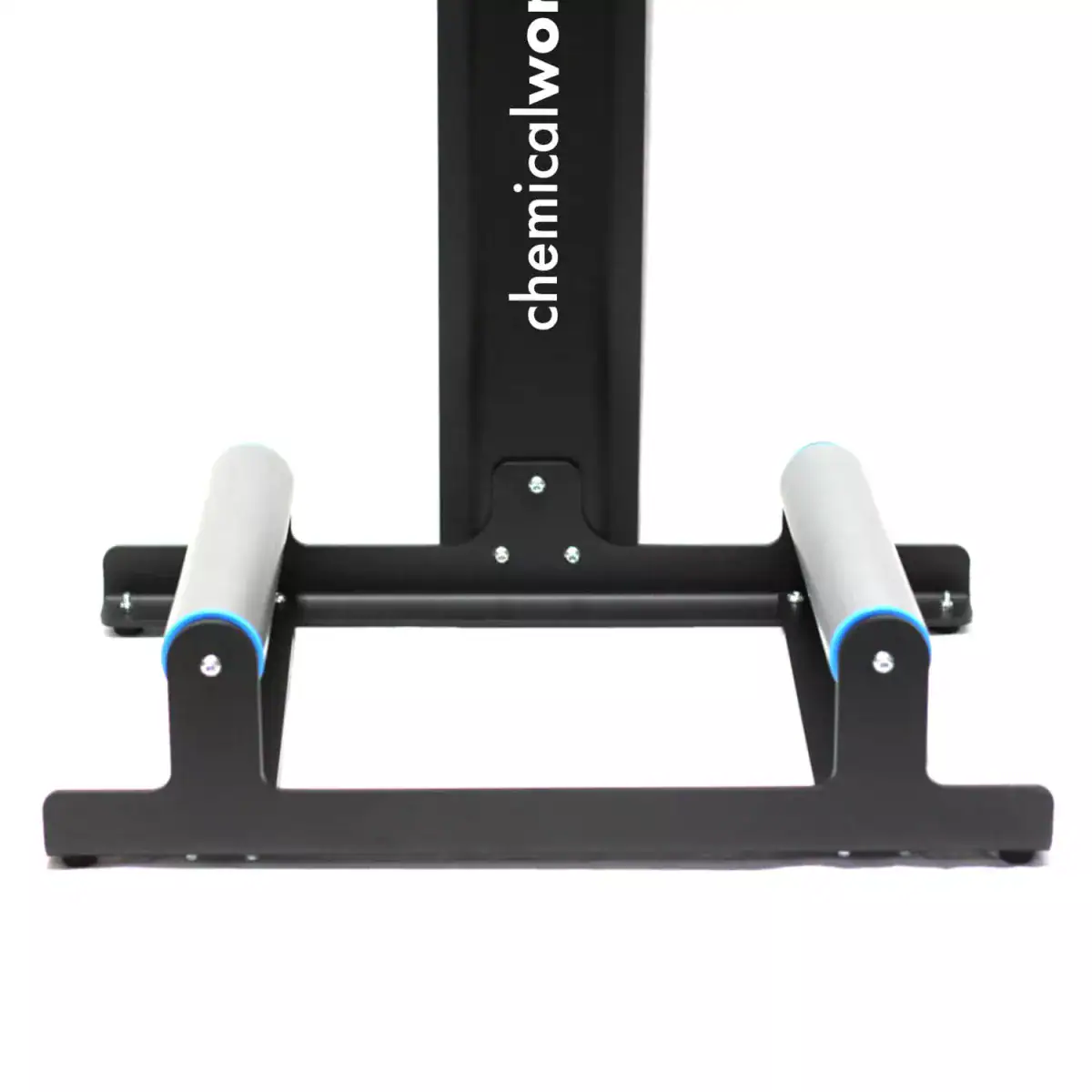Chemicalworkz Wheel Stand XL er designet til at stå solidt under arbejdet. De skridsikre gummifødder sikrer en stabil placering, mens den kraftige bageste bøjning af pandebåndet holder selv tunge hjul sikkert på plads.