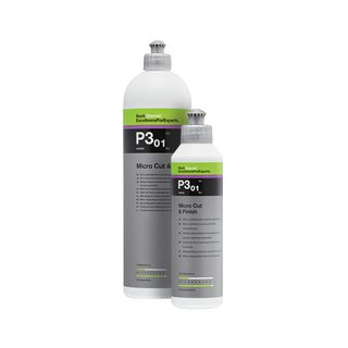 Den indeholder carnaubavoks Micro Cut & Finish er et maskine poleringsmiddel af den nyeste generation til permanent fjernelse af hologrammer, fine ridser og slibninger op til korn 3.000 på alle (inklusive ridsefast) malingssystemer, med samtidig langvarig beskyttelse med en høj grad af glans og glathed. Ved hjælp af højt specialiserede og ekstremt homogene slibemidler, skabes en strålende og holdbar højglans finish, selv på mørke og lignende følsomme farver. Hologrammer og fine ridser elimineres mekanisk og dækkes ikke, som det ofte er tilfældet. Micro Cut & Finish er økonomisk, let at bruge og let at tørre af. Indeholder carnaubavoks og ikke-flygtige silikoner. Slibegrad: 3.2 Glansgrad: 9.5